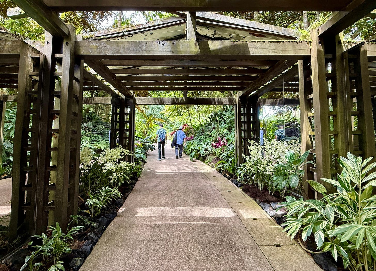 Here we are at the entrance to the National Orchid Garden at Singapore Botanic Gardens. The orchid gardens are the highlight feature—over 1,000 species and 2,000 hybrids are showcased.