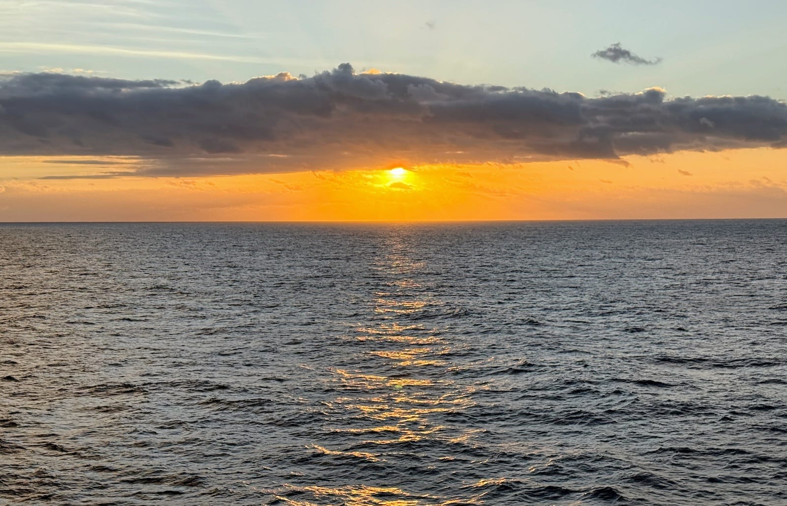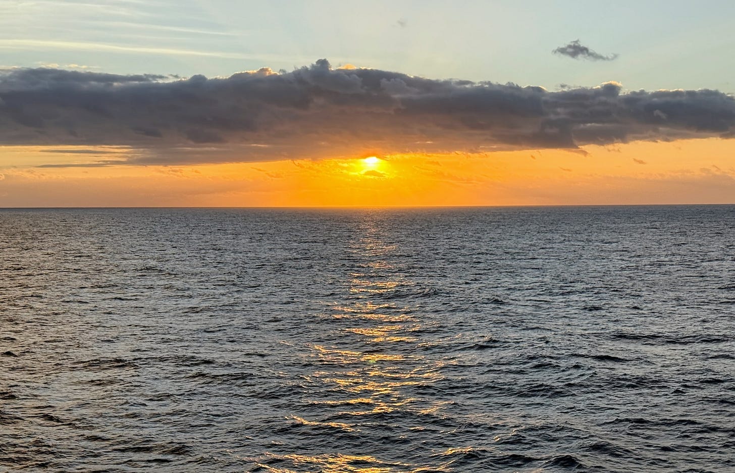 Here’s a booby against the sky and clouds. The last two days have been perfect for watching the ocean and sky. Since the internet is too slow to transfer my photos from my Canon camera to my computer, I’m sharing pictures from my iPhone. Once we arrive in Dominica, I’ll do a photo transfer and hopefully share a few close-up bird photos!