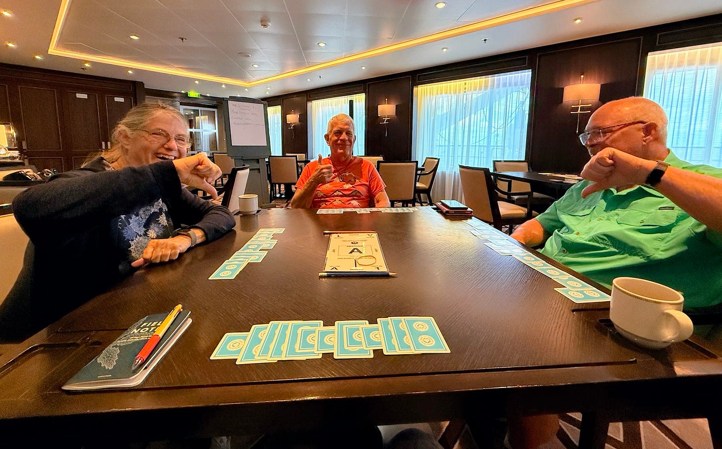 I know those of you who know me IRL are not surprised to hear that we are birding and writing and doing art and naming the daily colors of the ocean. But how many of you would be surprised to learn that Sherpa and I are taking Beginner Bridge lessons? You and me, both!