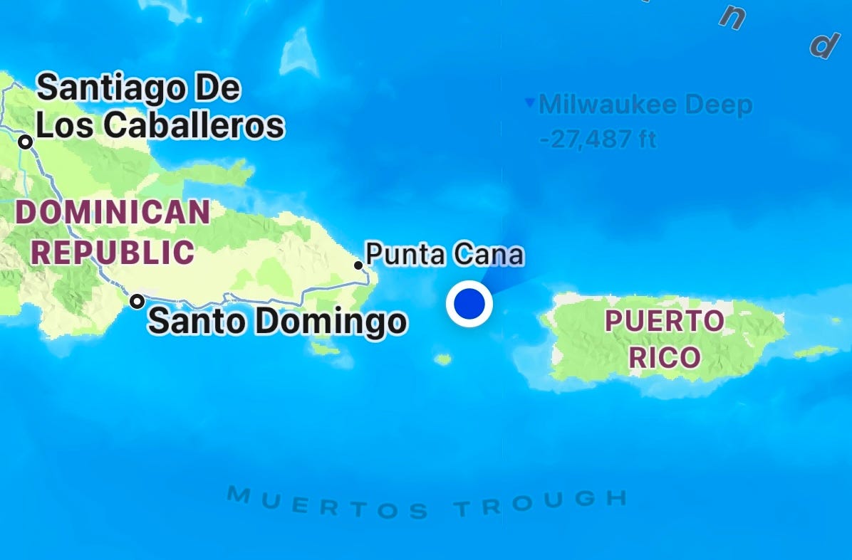 We’ve been sailing for two full days, and as I write, we are passing between the Dominican Republic and Puerto Rico through the Mona Passage. We sailed near the Milwaukee Deep—perhaps in honor of our home state!—one of the deepest parts of the Sargasso Sea at -27,487 ft. We also sailed through the Bermuda Triangle without incident—although one of the onboard lecturers dispelled the myth of the Bermuda Triangle before our sail-through, so we knew in advance we had nothing to fear. We have another twenty-four hours of sailing before we arrive at our first destination, Roseau, Dominica.